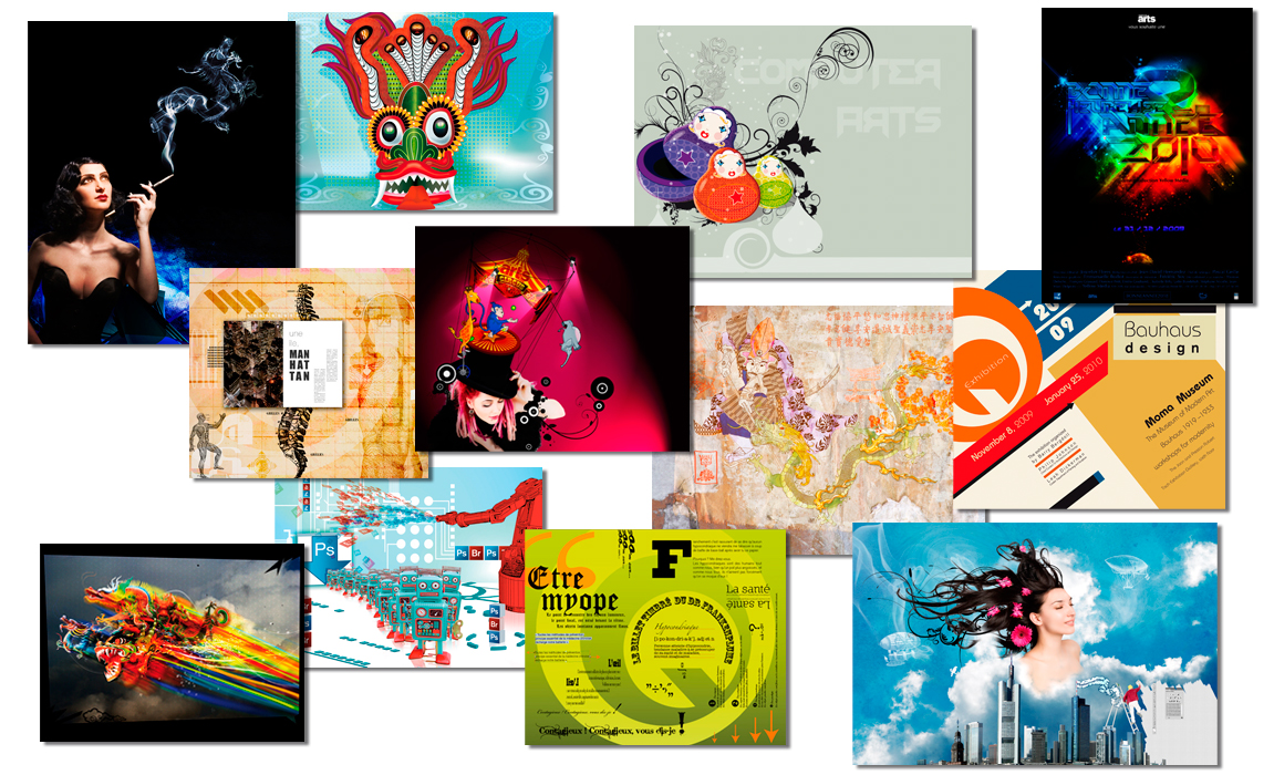 Exemples d'images d'ouverture créées pour illustrer les étapes dans le magazine Computer arts.