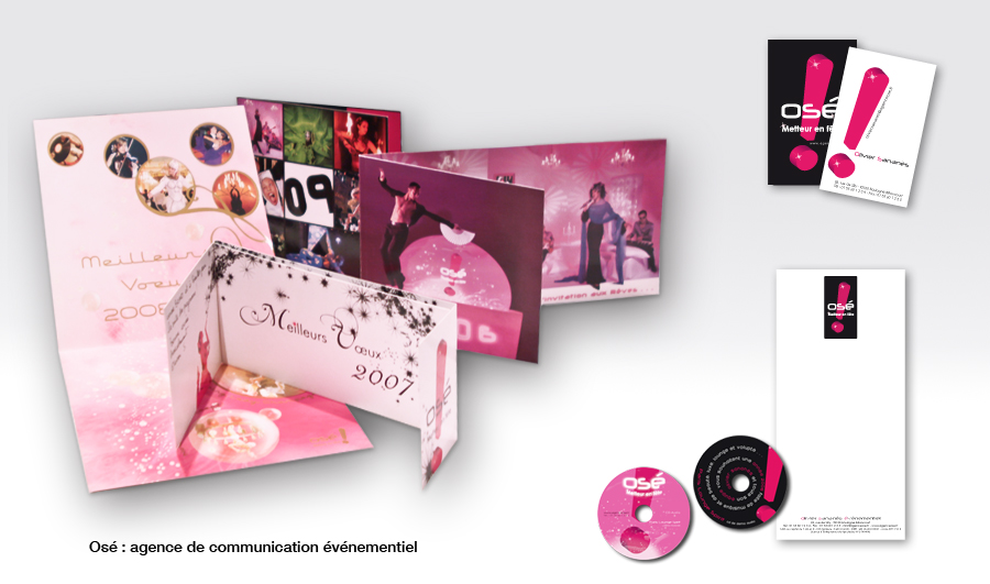 Refonte de la charte graphique, création du logo, de la papeterie, de cartes de vœux et du site internet de l'agence événementielle Osé!