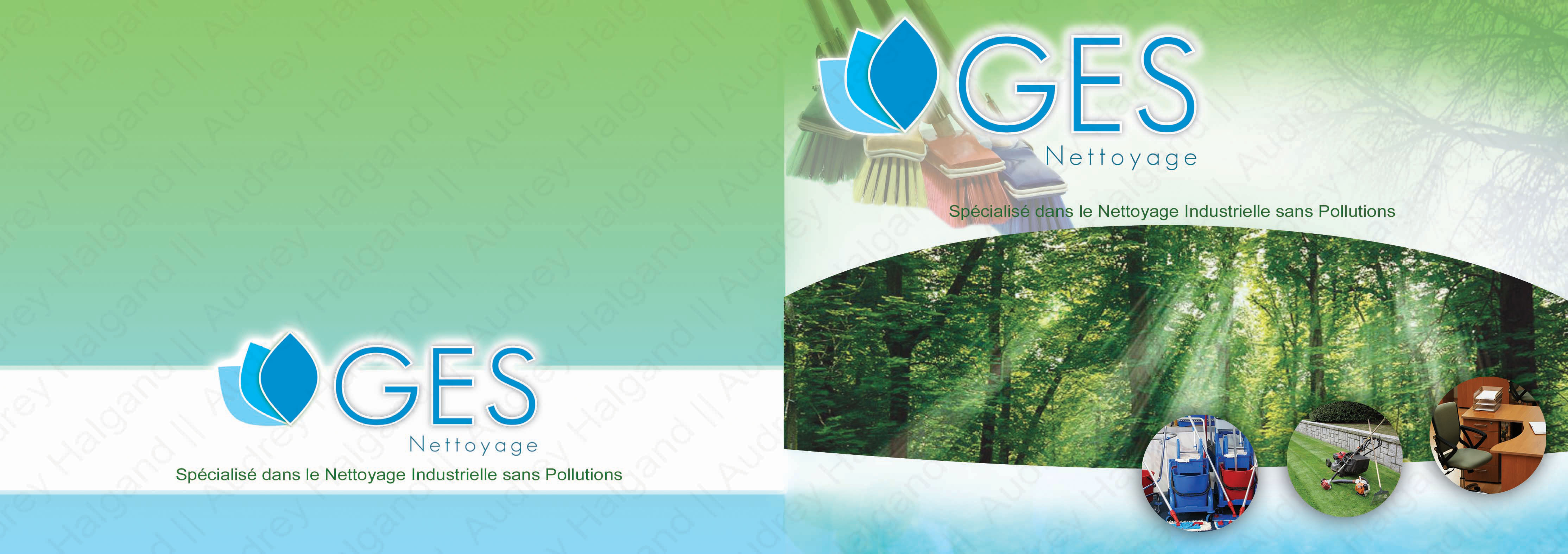 Ceci est un travail réalisé pour une jeune société qui propose des services d'entretien. C'est une plaquette A4,des entêtes étaient comprises pour cette commande.