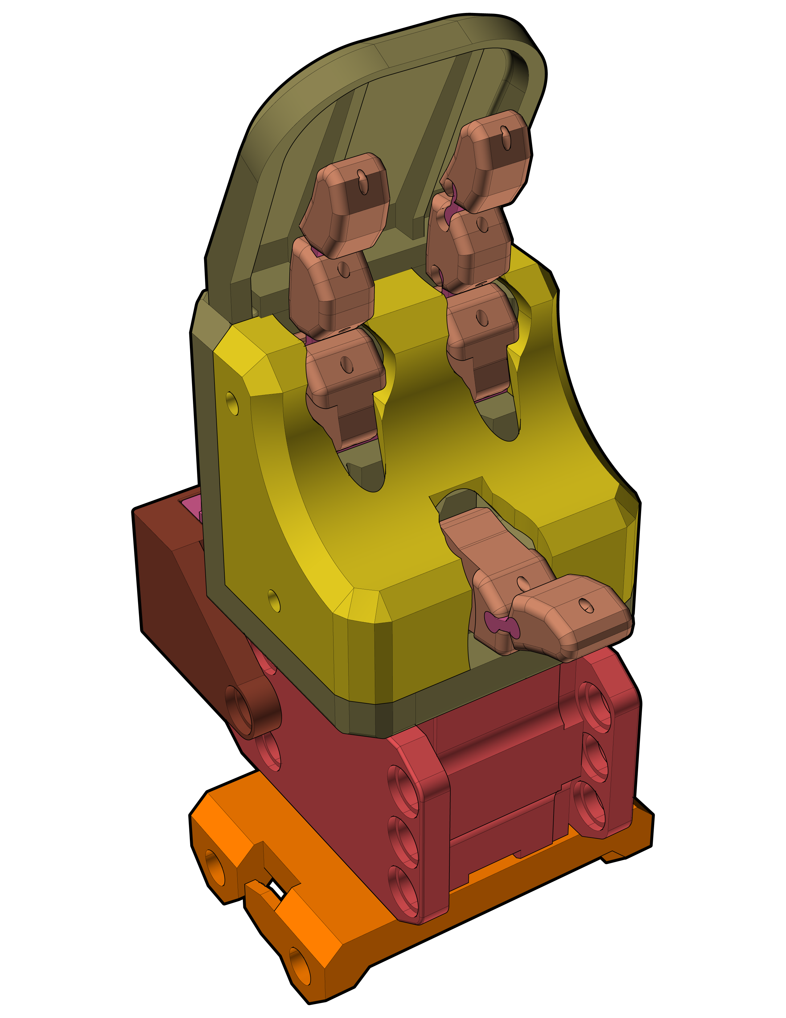 Modélisation de 14 pièces composant la main de "Roby le robot". L'ensemble de ces pièces ont été imprimées en 3D.