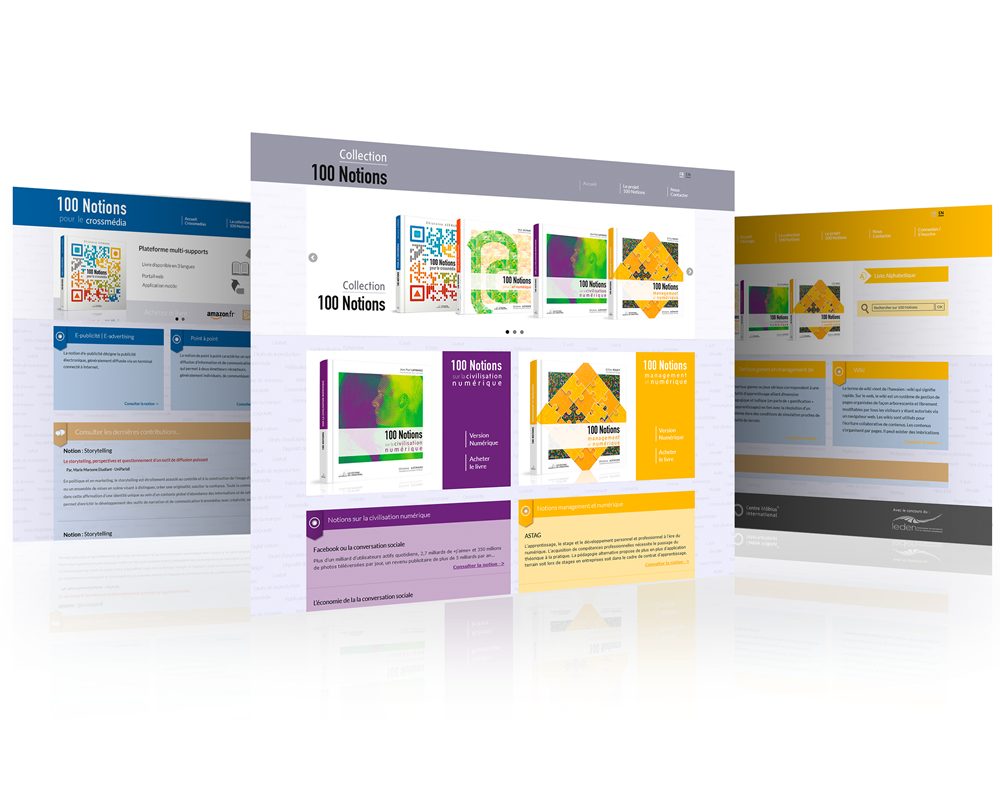 Travail effectué : Conception de l'interface graphique du site internet et développement. - Conçu comme un véritable projet crossmédia, cet ouvrage se présente sous la forme d'un livre et d'une plateforme en ligne accessible sur le site www.100notions.com