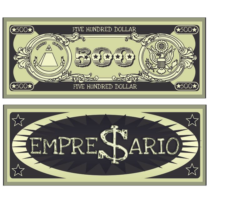 Conceptualization des billets pour le jeu de société péruvien "Empresario"