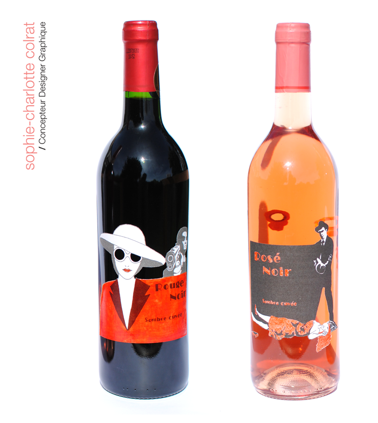 Description de la référence portfolio : Bouteilles réalisées sur le thème d'un salon littéraire. Le thème évoqué par ces bouteilles est celui du roman policier. Ce travail a été réalisé à la main. En effet, ce travail d'école avait pour contrainte d'être réalisé entièrement à la main et d'utiliser la photocopieuse pour reproduire l'illustration.