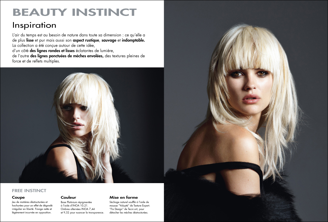 Description de la référence portfolio : Dossier de presse pour un coiffeurMise en page, chromie, retouche imagePage 2 et 3