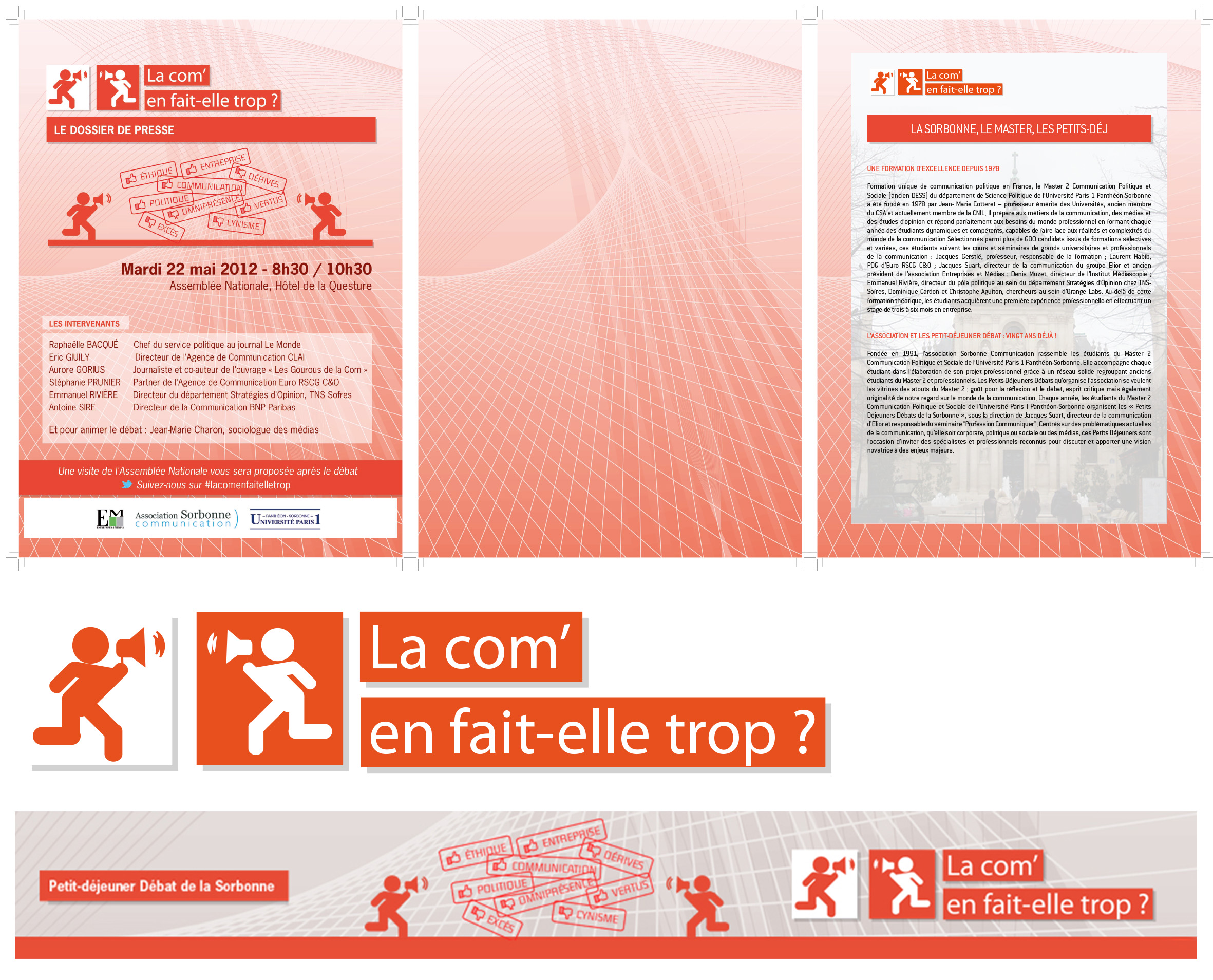 Création de l'identité visuelle de l'événement et déclinaison sur différents supports : affiche, invitations, dossier de presse, programme, éléments pour communication sur les réseaux sociaux.