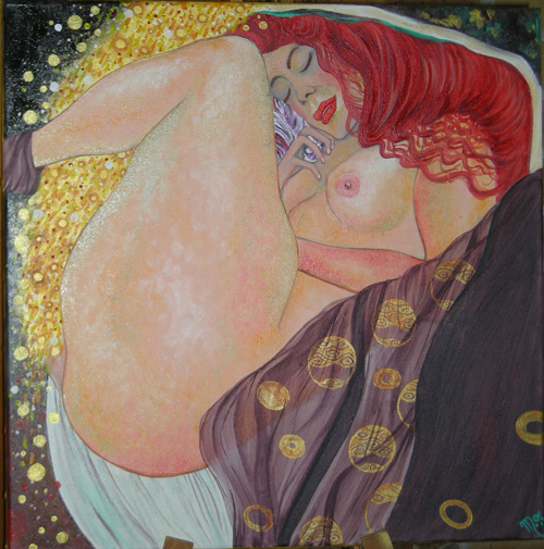 Reproduction de "Danaé" de Klimt.Huile sur toile 50x50cm. | |