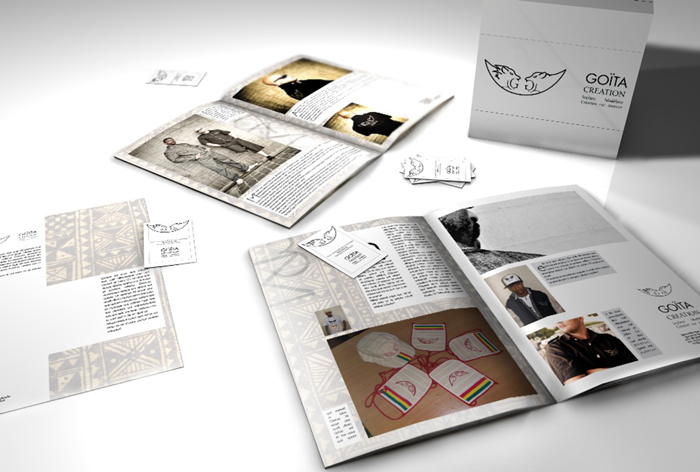 Description de la référence portfolio : charte graphique de goïtavêtement sportswearet impressions dépliant->