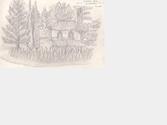 Description : Dessin en N&B au crayon gris d'un paysage d'un jardin de Toulouse.
