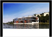 Description : Image de synthèse d'un Habitat flottant sur Seine en France réalisée pour un client afin de visualiser l'ambiance général