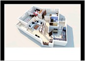 Description : Image de synthèse visualisant une vue de maquette d'une maison afin de montrer l'aménagement général
